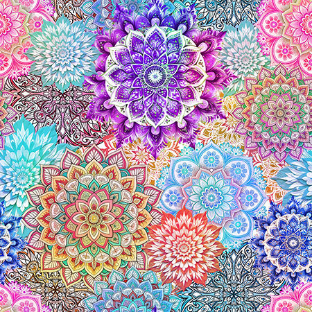 A beautiful backing fabric that is bright, colourful and just fun!! Mandala designs are just so cool. Cotton, 108 wide