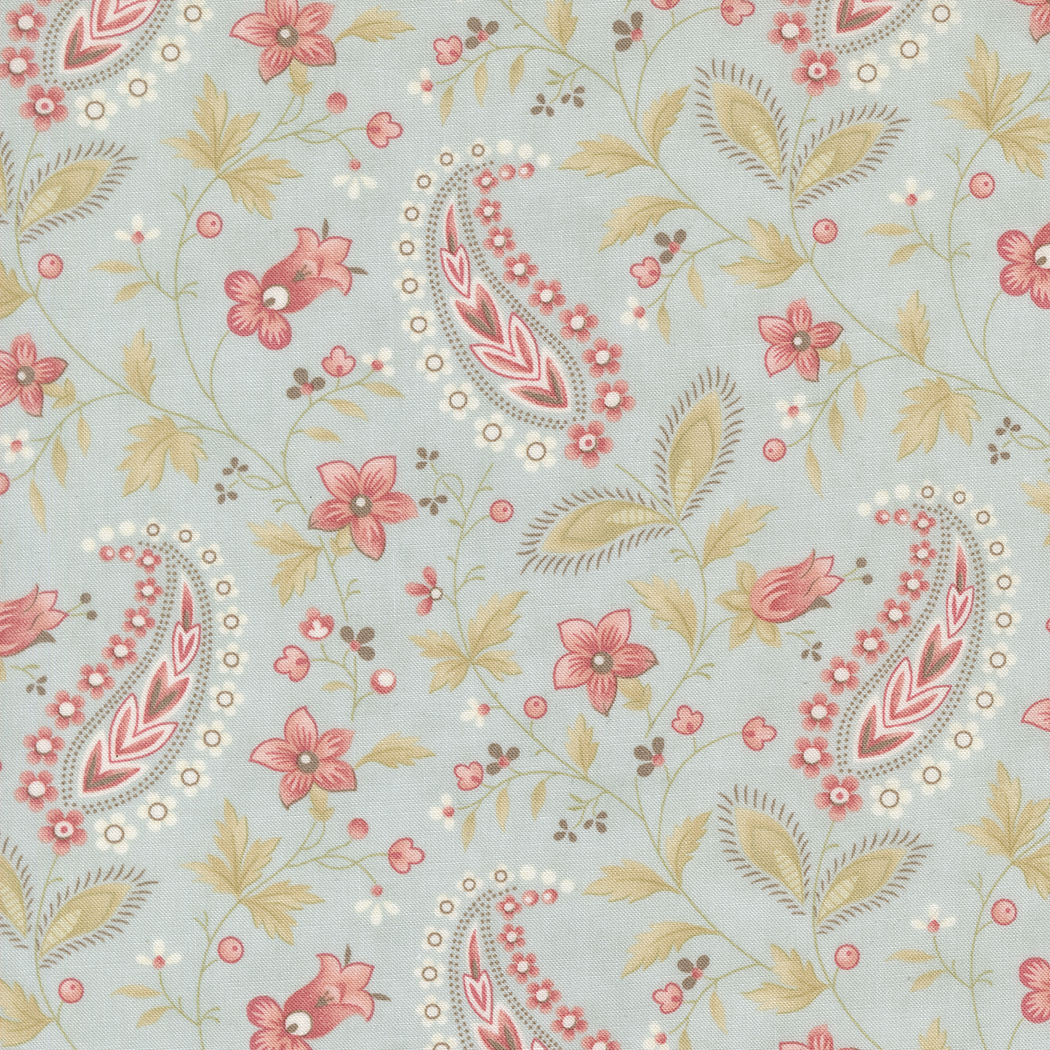 Muse by Moda Fabrics – a mix of light and delicate colouring of whimsical florals, wispy ornamentals and layered botanical prints that includes a paisley. It is perfect for a sweet Quilt or two.